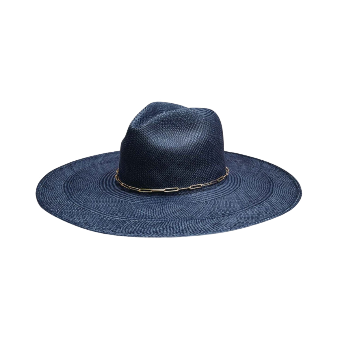 ANNA - Wool Hat - Gold plated chain around brim with bracket detail - Color Blue Jean...