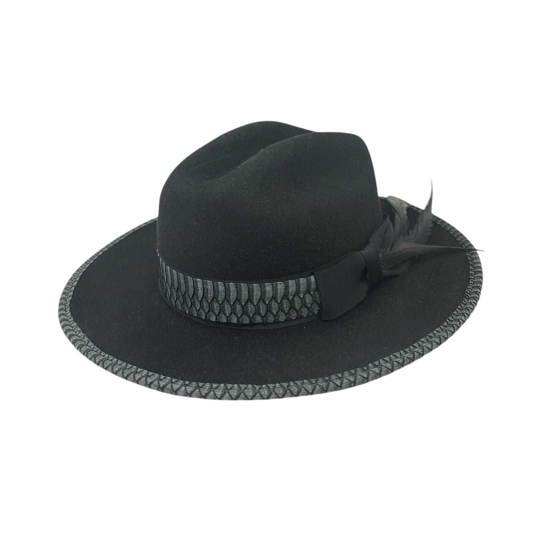 ANNA - Wool Hat - Gold plated chain around brim with bracket detail - Color Black The...